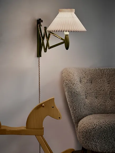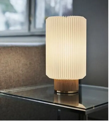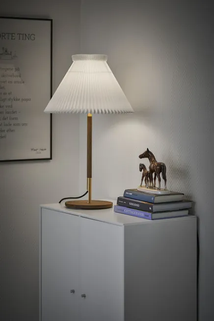 I forbindelse med Le Klints 80-års jubilæum, lancerer de Model 328. Model 328 lampen fås både i bordlampe og i gulvlampe. Lampen er med den helt klassiske plisserede skærm, som Le Klint jo især er kendt for, og så med en flot fod i egetræ med messingdetaljer. Model 328 bordlampen er klassisk og stilfuld, og vil passe ind i langt de fleste danske hjem.