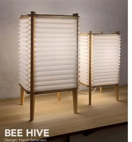 Lampen fremstilles i foldet papir og med træstel i lys olieret egetræ. BEE HIVE er en lampe som formår at udstråle luksus og minimalistisk elegance på en og samme tid.